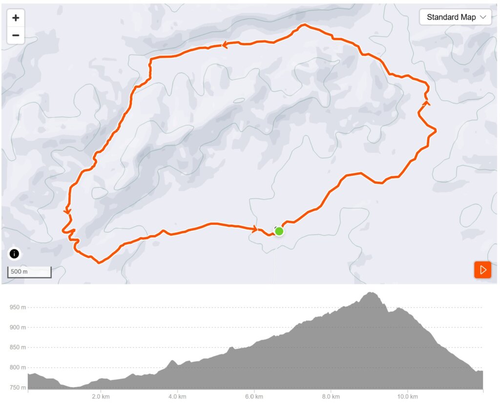 3.3 – 6.5km Good jeep track, single track with short challenging sections. Gentle climb.