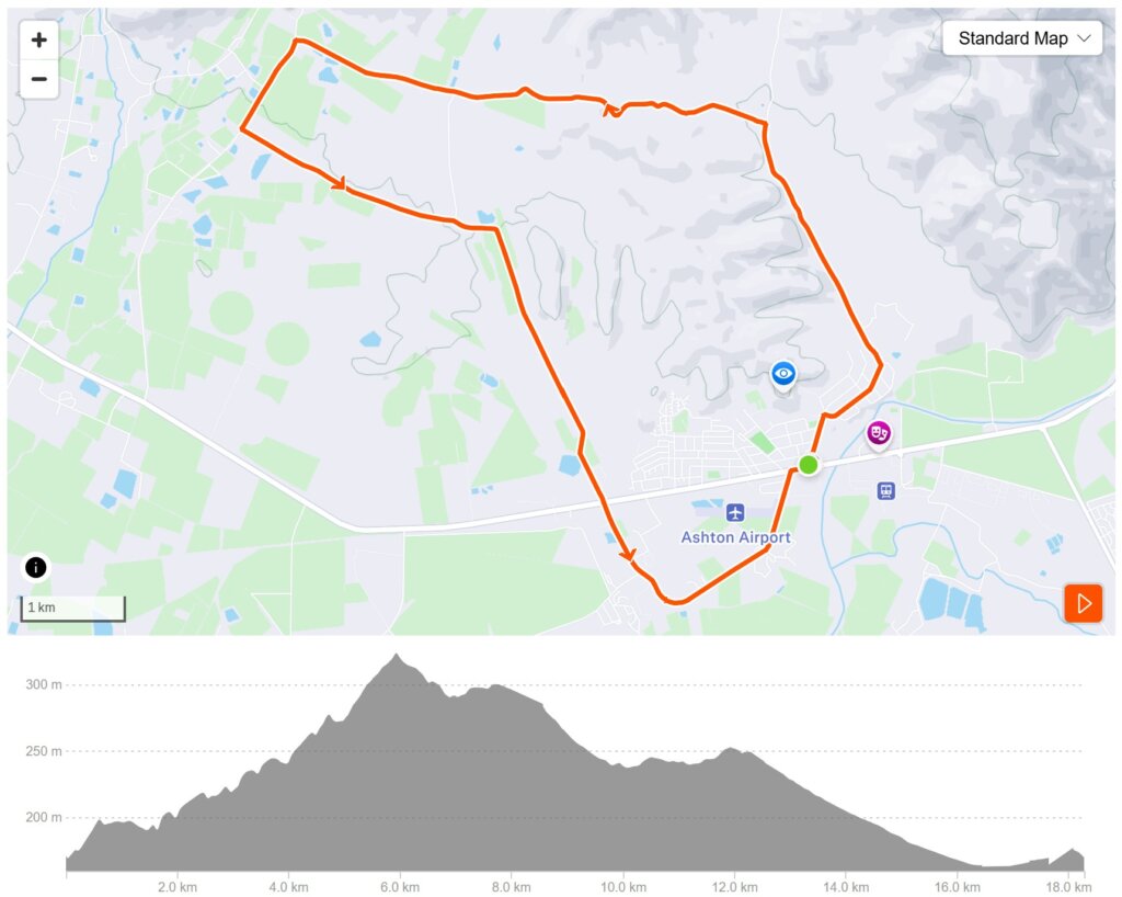 19.2 km, Straight for clockwise loop, turn right for ant-clockwise loop (circular