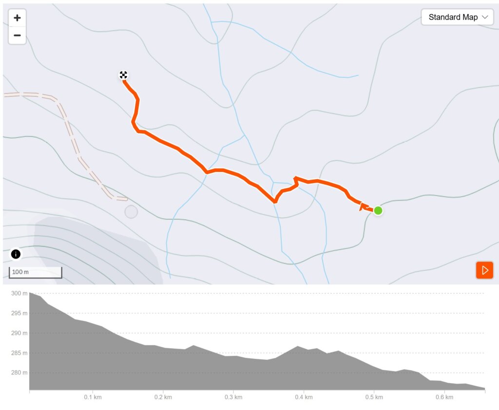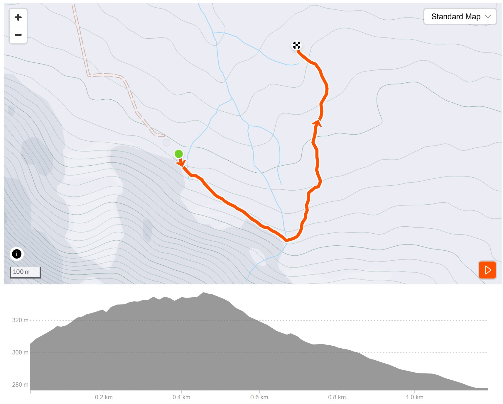 Caution is required on the descent as the drop-down has about ten water runoff humps. Once you are through the nursery it is a fast drop down back home.